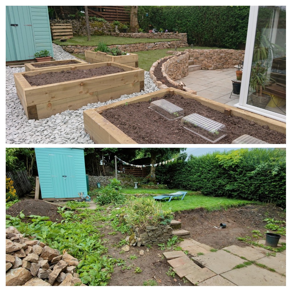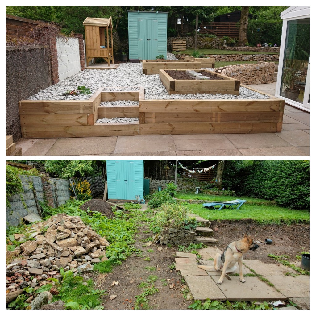 Ed and Daz did a fabulous job, knowing I had a budget to keep within and making some great suggestions for tne raised bed. It’s a joy to go out and garden. And I have a little corner that catches the evening sun to go and sit in.