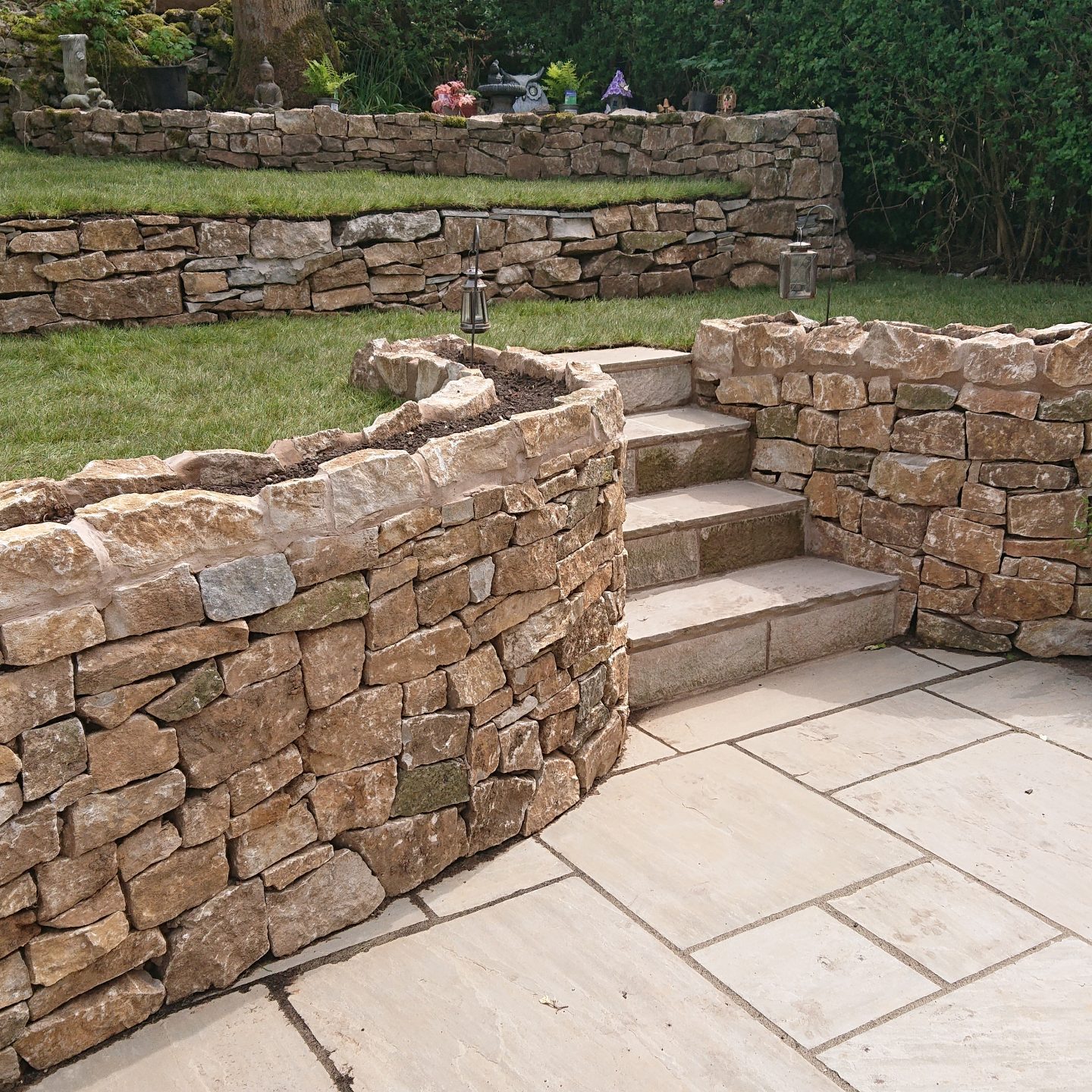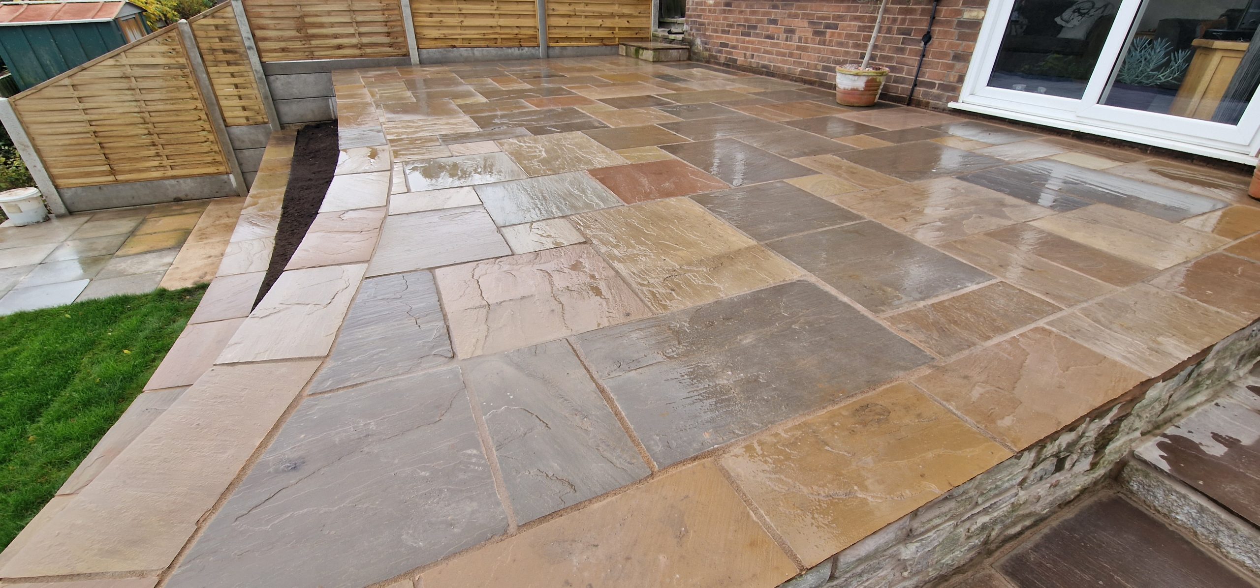 Now I have some really well laid Indian stone, a raised bed, and an area by the front wall to grow a hedge of mixed shrubs.